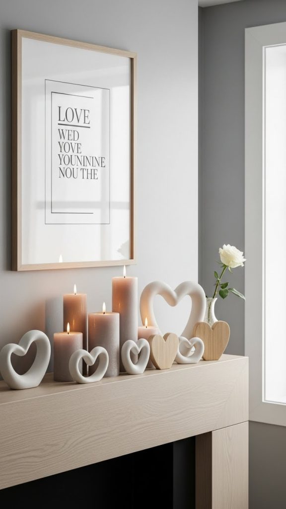 For those who prefer subtle décor, minimalist Valentine accents are perfect. Simple touches like neutral-toned candles, small heart sculptures, or framed love quotes can express romance without bold colors. This approach blends seamlessly with modern interiors and keeps the décor elegant and timeless.