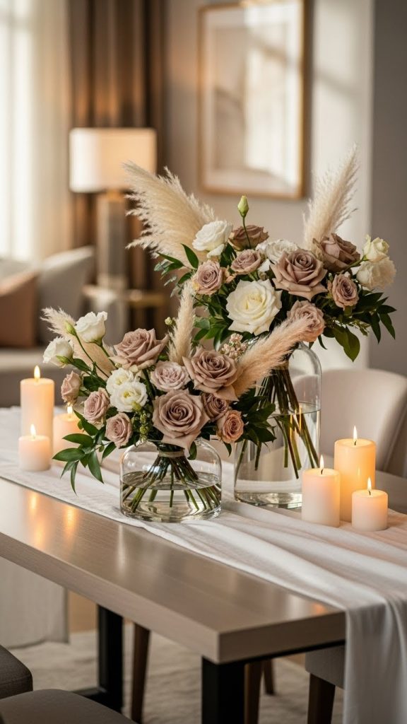 Flowers are timeless for Valentine’s Day, but giving them a creative twist makes them even more special. Instead of traditional bouquets, use floral hoops, glass vases with floating roses, or dried flower arrangements. Combining fresh flowers with greenery or pampas grass creates a modern romantic look that lasts beyond the day itself.