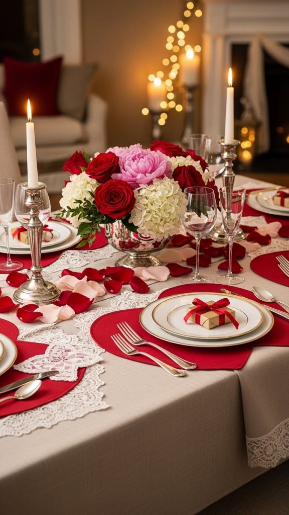 A beautifully styled table can become the heart of your Valentine celebration. Use a soft table runner, heart-shaped placemats, and elegant dinnerware in romantic tones. Add candles, small floral centerpieces, and handwritten love notes to personalize the setting. Whether it’s a full dinner or a dessert table, a cozy setup makes the moment feel extra special.