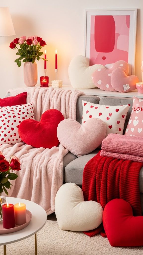 Textiles play a major role in creating comfort and warmth. Swapping regular cushions for Valentine-themed ones featuring hearts, love quotes, or soft textures can refresh your living room or bedroom instantly. Add cozy throws in pink, red, or neutral tones to make the space inviting and perfect for cuddling.