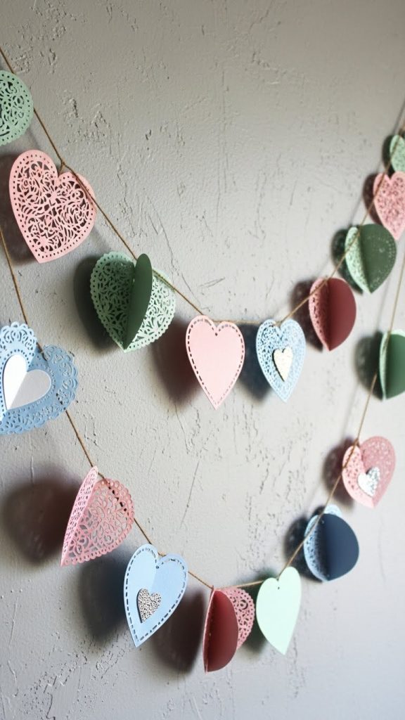Handmade garlands bring a personal touch that store-bought décor often lacks. Paper hearts, fabric banners, or felt garlands strung across walls or windows add playful romance. You can customize colors, sizes, and styles to match your décor theme, making this idea both budget-friendly and heartfelt.