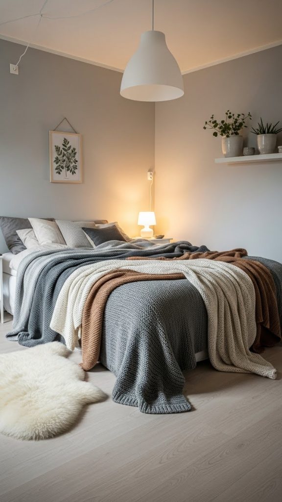 Scandinavian style blends warmth with simplicity. Use white or light-gray walls, wooden floors, and cozy textiles. A fluffy rug, knit throws, and layered bedding create instant comfort. Add plants or minimalistic prints for personality.