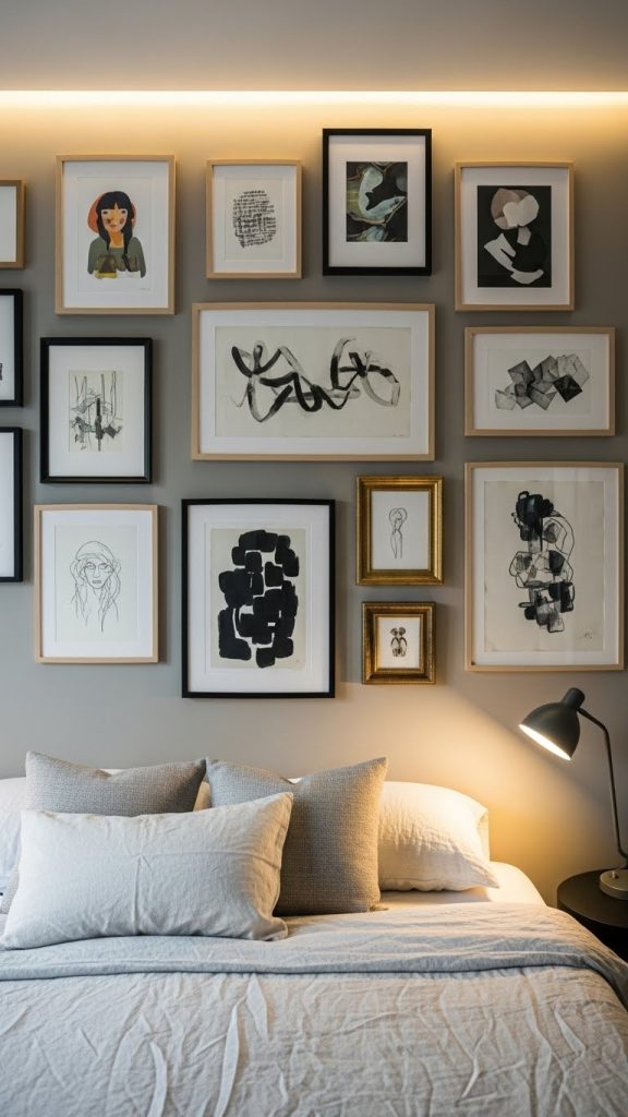 7. Artistic Gallery Wall Bedroom