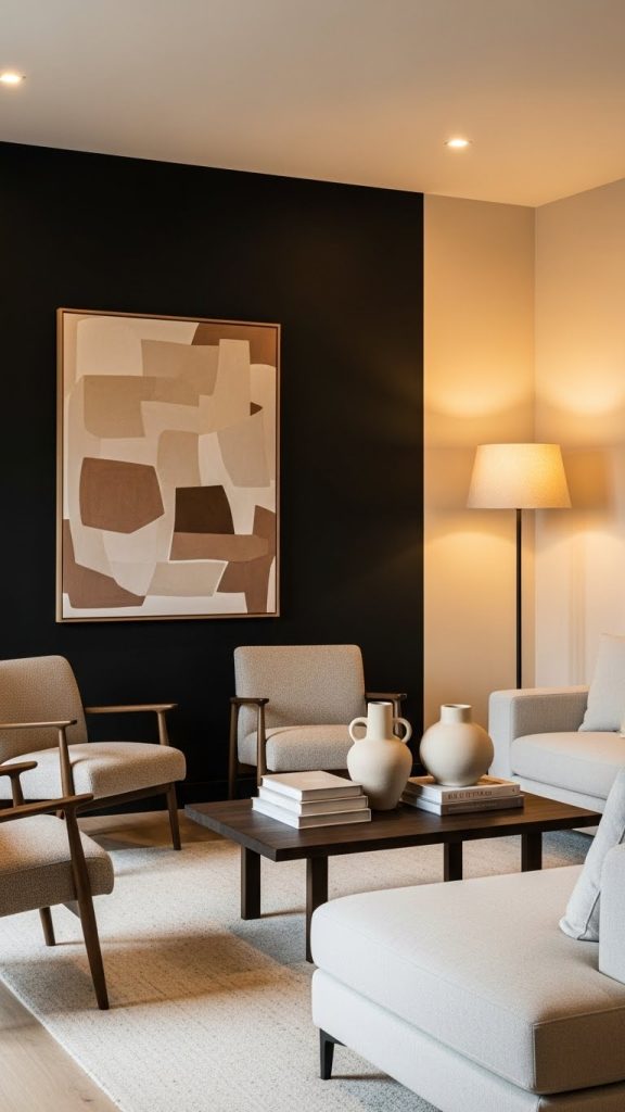 1. Black Accent Wall with Beige Surroundings