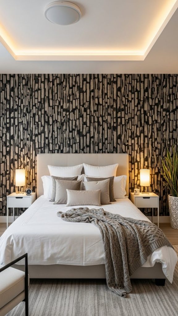 5. Black and Beige Wallpaper Feature Wall