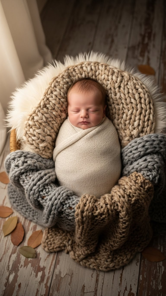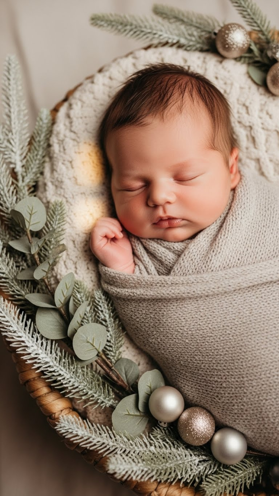 If the baby is born near a holiday or season, a themed setup can be fun and festive. Think soft, subtle props rather than overwhelming decorations, so the baby stays the main focus.