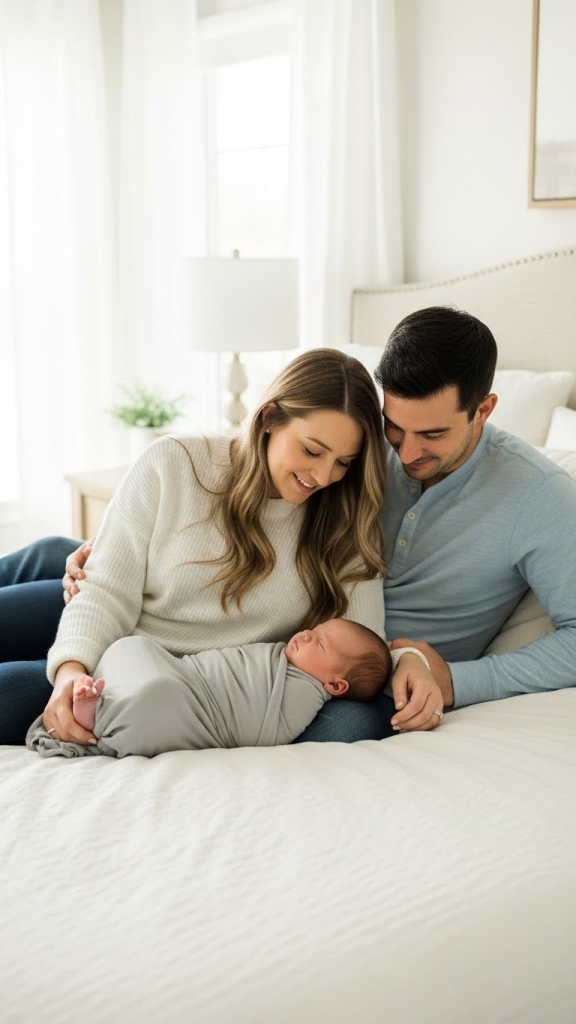 A lifestyle session on the parents’ bed feels relaxed, natural, and easy to set up at home. This style focuses less on perfect posing and more on real moments and cuddles.