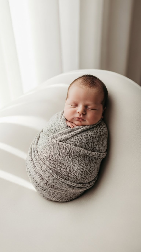 - Position the baby in a natural pose—on their back or side, lightly wrapped.