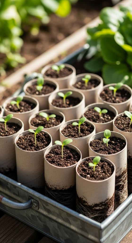 Toilet paper rolls are biodegradable, making them perfect for starting seeds. Fill them with soil, plant your seeds, and place them in a tray near sunlight.