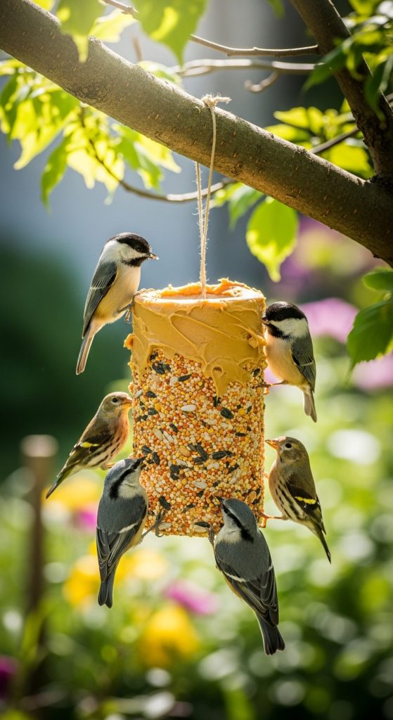 Cover a toilet paper roll in peanut butter and roll it in birdseed. Slide it onto a tree branch and watch as birds flock to your creation.