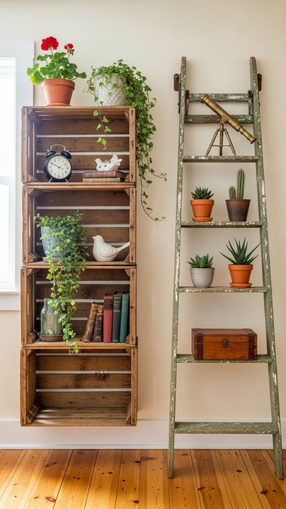 Upcycling is a sustainable and budget-friendly way to transform your room. An old ladder can become a stylish bookshelf, mason jars can turn into decorative vases or candle holders, and wooden crates can be stacked to make a rustic storage unit.