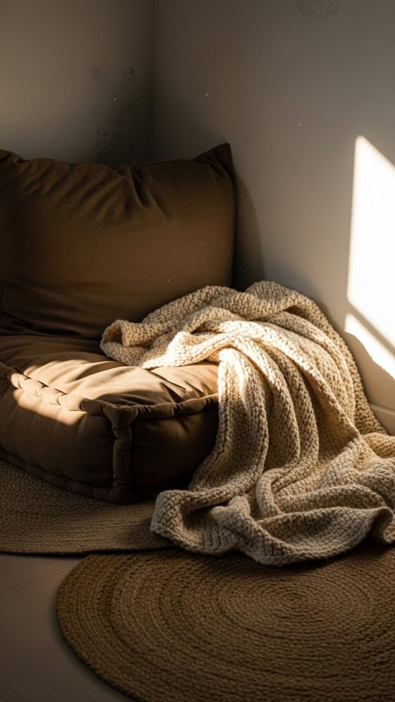 Even a dollar store rug or a DIY floor pillow can complete the look. This small investment can provide a peaceful spot to unwind, read, or meditate, adding a functional and aesthetic touch to your room.