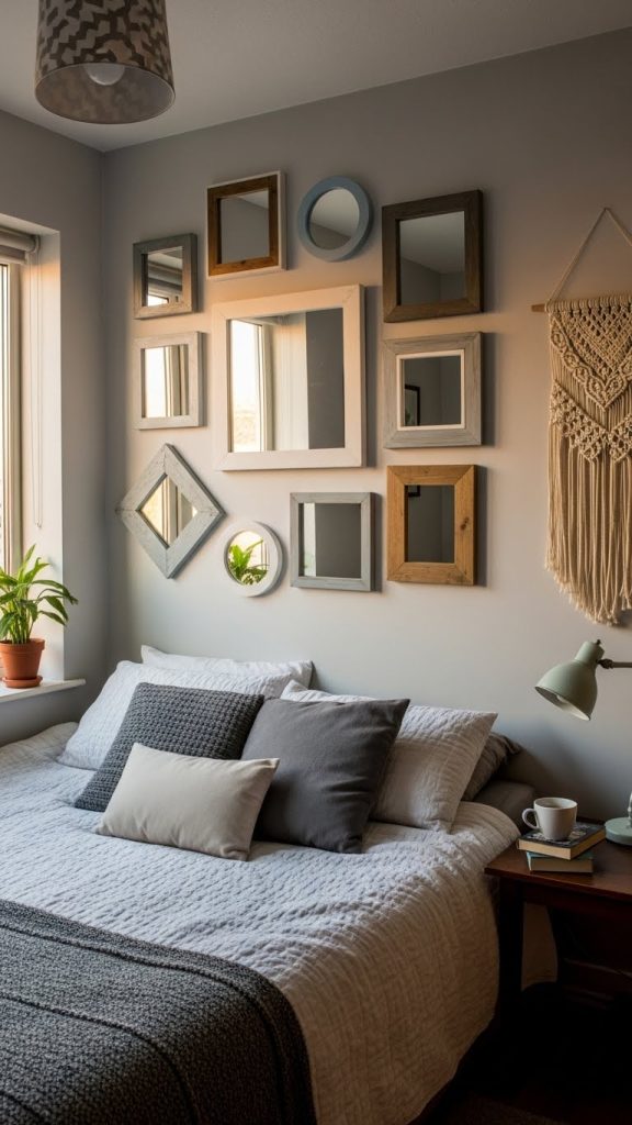Creating a mirror wall with multiple small mirrors arranged in a pattern is also a fun project. It’s an affordable way to enhance the perception of space while adding a chic, reflective feature to your room.