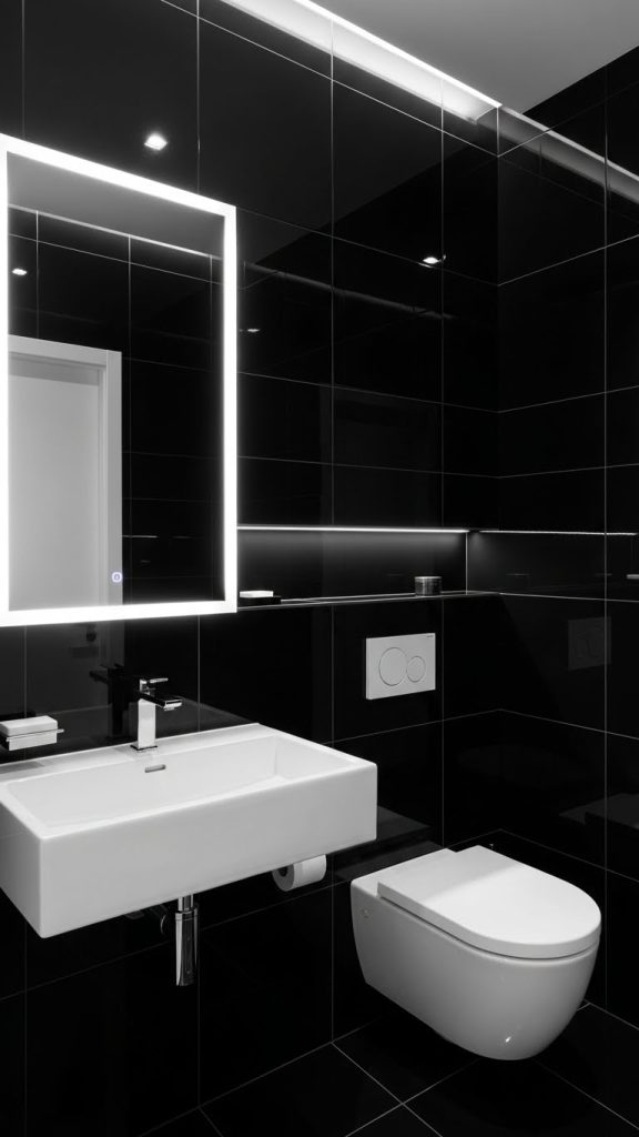 Monochrome glossy tiles in shades like black, gray, or beige can create a sophisticated and dramatic atmosphere. They add depth to the bathroom, especially when contrasted with lighter fixtures or natural elements. Glossy black tiles, for instance, reflect light subtly, making them perfect for a sleek, modern bathroom with a minimalist vibe.