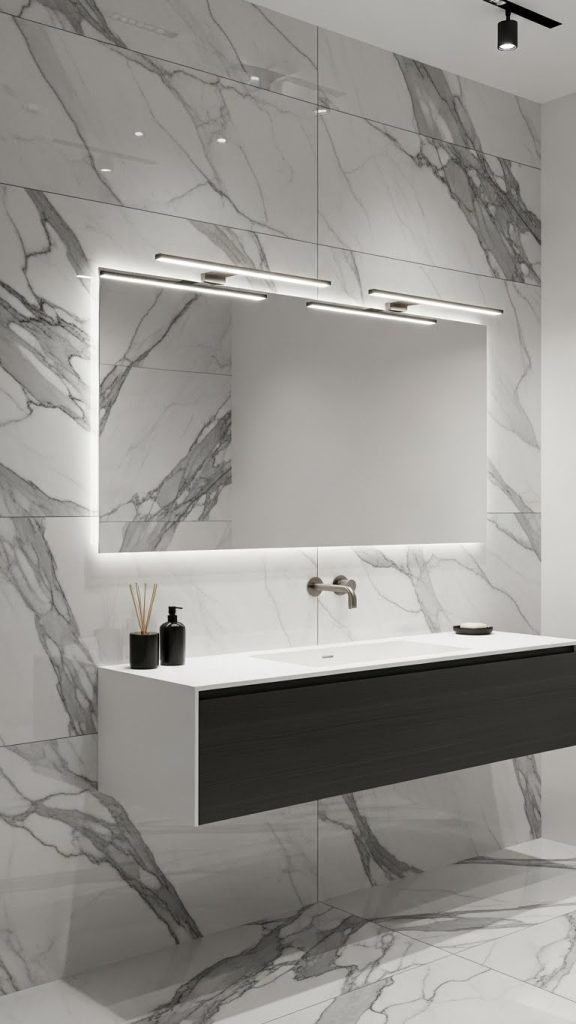 Tip: Use marble-effect tiles as a feature wall behind the vanity or in the shower for a striking impact.