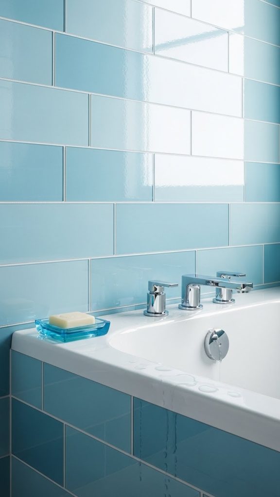 Tip: For a luxurious feel, choose tinted glass-like glossy tiles in soft pastels or muted jewel tones.