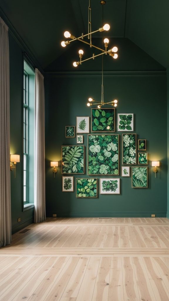 9. Deep Green Walls with Light Flooring