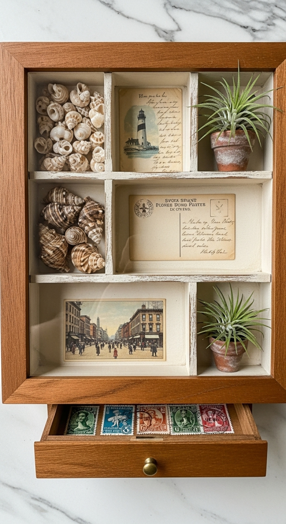 Shadow boxes add dimension to walls. Use them in living rooms or hallways to curate keepsakes or decorative objects.