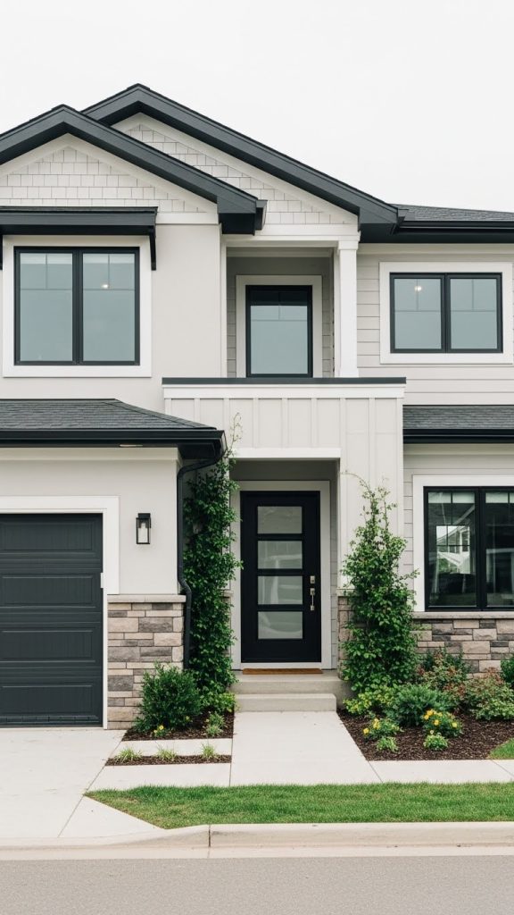 Adding natural materials like stone or brick can instantly elevate your home’s exterior. Stone cladding on the façade, brick borders around windows, or a stone pathway leading to the entrance creates a sense of timeless elegance. These materials add texture, durability, and visual interest, blending traditional charm with modern sophistication. Combining stone or brick with wood or painted surfaces can create a striking contrast.