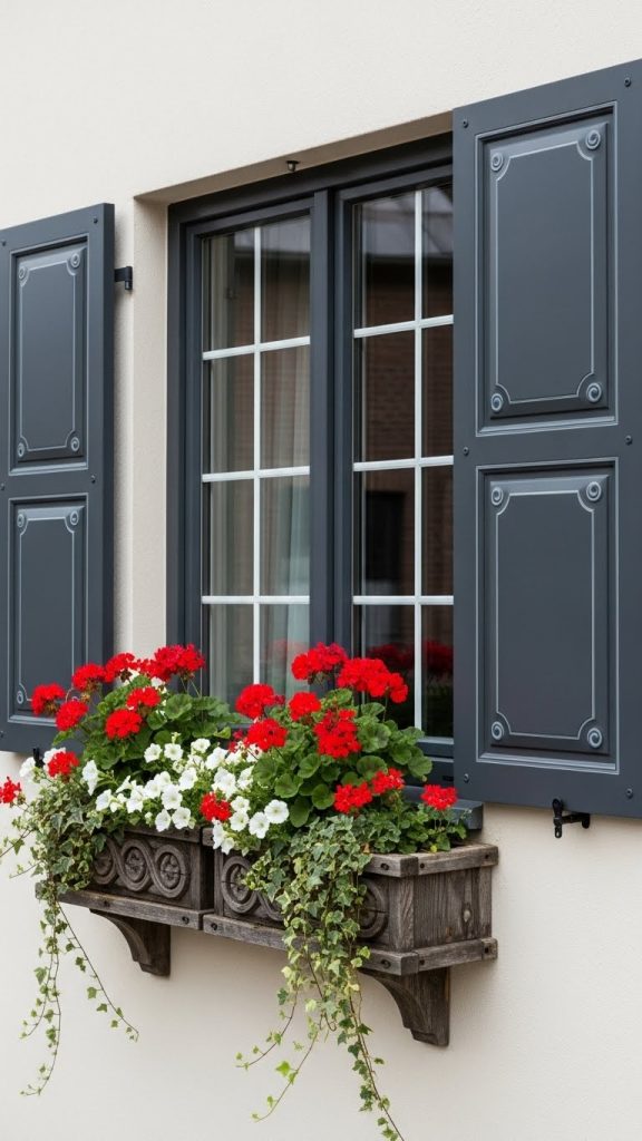 Window shutters and trims add character and depth to your home’s exterior. Traditional wooden shutters painted in contrasting colors can highlight windows, while modern panel shutters create sleek symmetry. Decorative trims around windows and doors enhance architectural detailing, making your home look polished and well-designed. Even simple additions like matching planter boxes beneath windows can give a cohesive, finished look.