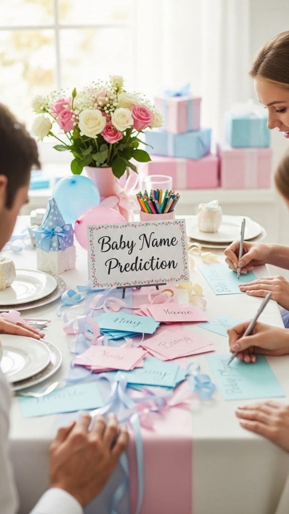 This activity taps into everyone’s curiosity and creativity. Set up a beautifully decorated table with cards where guests can predict the baby’s name, birth date, weight, and time of arrival. Guests love making guesses, and parents enjoy looking back later to see who came closest. You can even offer a small prize to the winner after the baby is born. This activity doubles as a keepsake that captures everyone’s excitement before the big day.