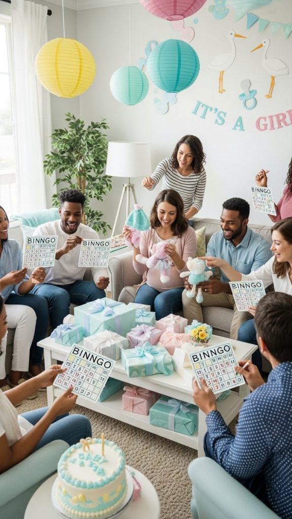 Baby shower bingo is an excellent way to keep guests involved during gift opening. Each bingo card features common baby items instead of numbers. As gifts are opened, guests mark off items on their cards. The first to get bingo wins a prize. This activity keeps energy high, prevents boredom, and makes gift-opening more interactive for everyone.