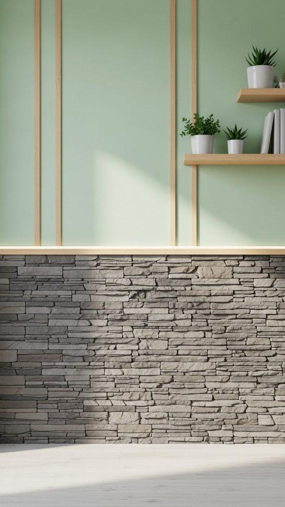 Combine different materials and textures on one wall for a modern, layered look. Think of mixing wood with stone, metal with plaster, or painted sections with wallpaper panels. Mixed material walls are visually dynamic and can act as the centerpiece of your living room.
