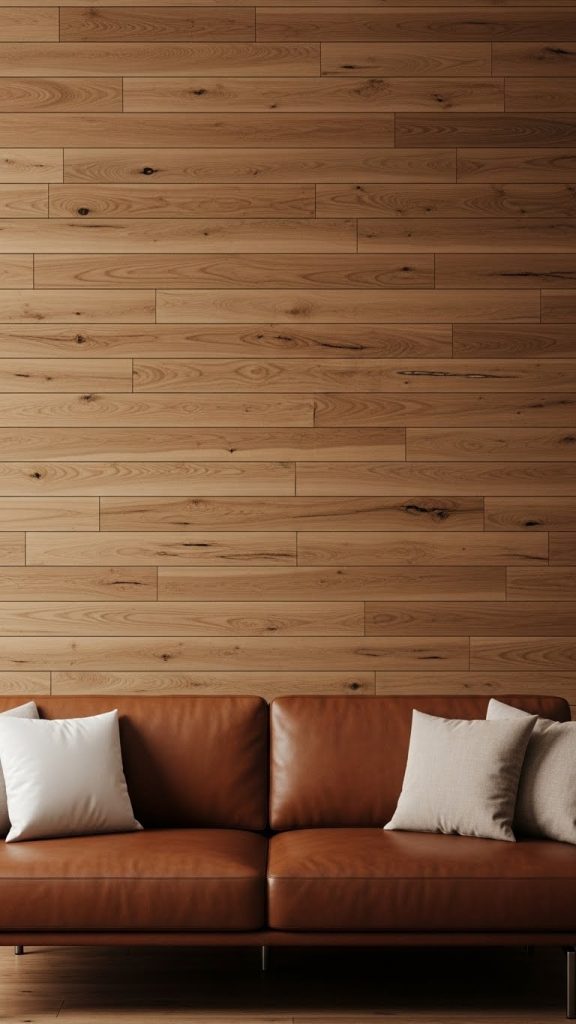 Wood accent walls add warmth and a natural element to any living room. Whether it’s reclaimed wood, shiplap, or modern wooden panels, wood instantly gives a cozy, inviting feel. You can install panels vertically, horizontally, or even in geometric patterns for a unique twist.