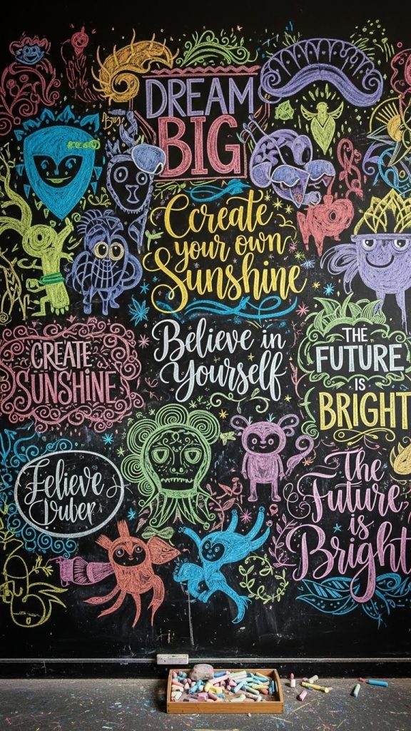 For a fun and functional twist, consider a chalkboard or writable wall. This is perfect for families who want a creative space for notes, drawings, or inspirational quotes. It’s also a great way to experiment with changing designs and seasonal décor without permanent commitment.