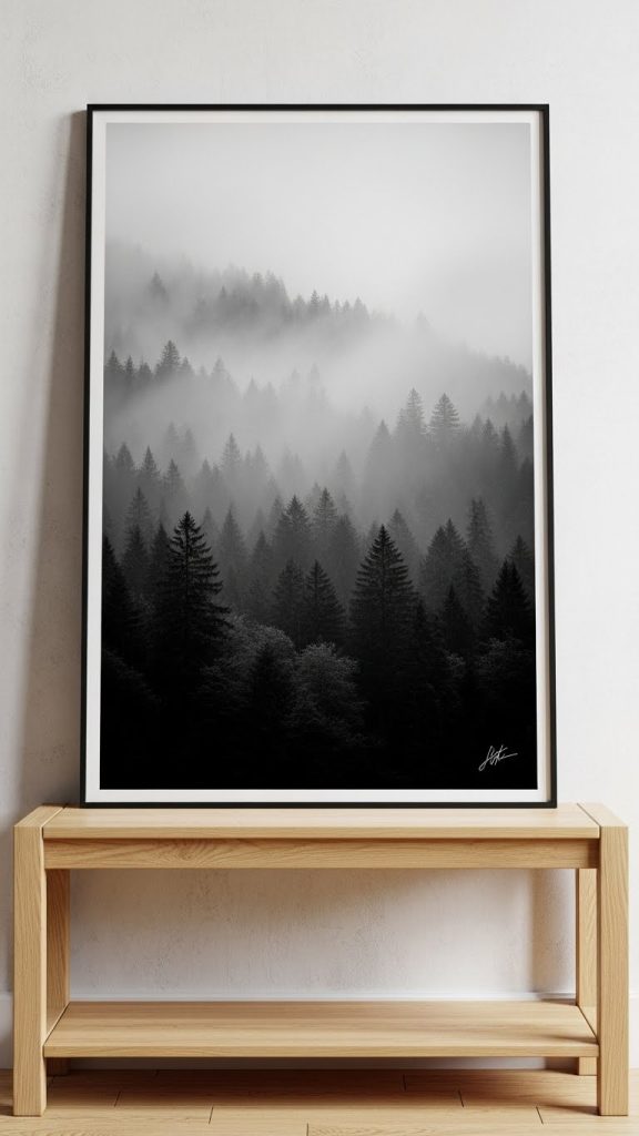 Photography is an art form that needs no embellishment. Minimalist photography focuses on clean compositions, negative space, and soft contrasts. Black-and-white photos of landscapes, architecture, or simple objects can add a serene, sophisticated touch to your walls.
