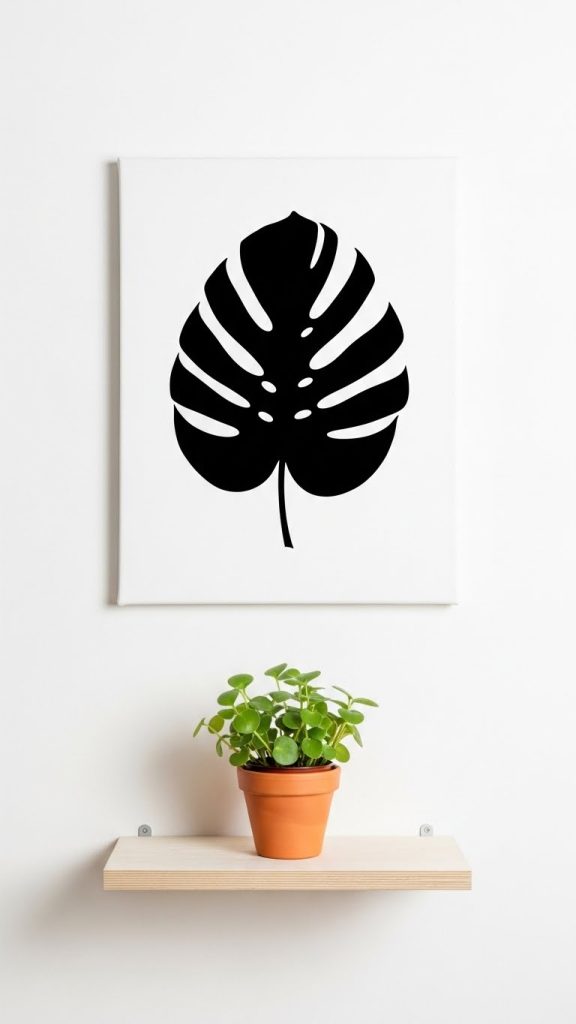 Simple silhouettes of plants, trees, or flowers in black or neutral shades can bring a touch of nature into your minimalist interior. These pieces are understated yet effective, providing a calm and organic feel to the room without breaking the minimalist aesthetic.