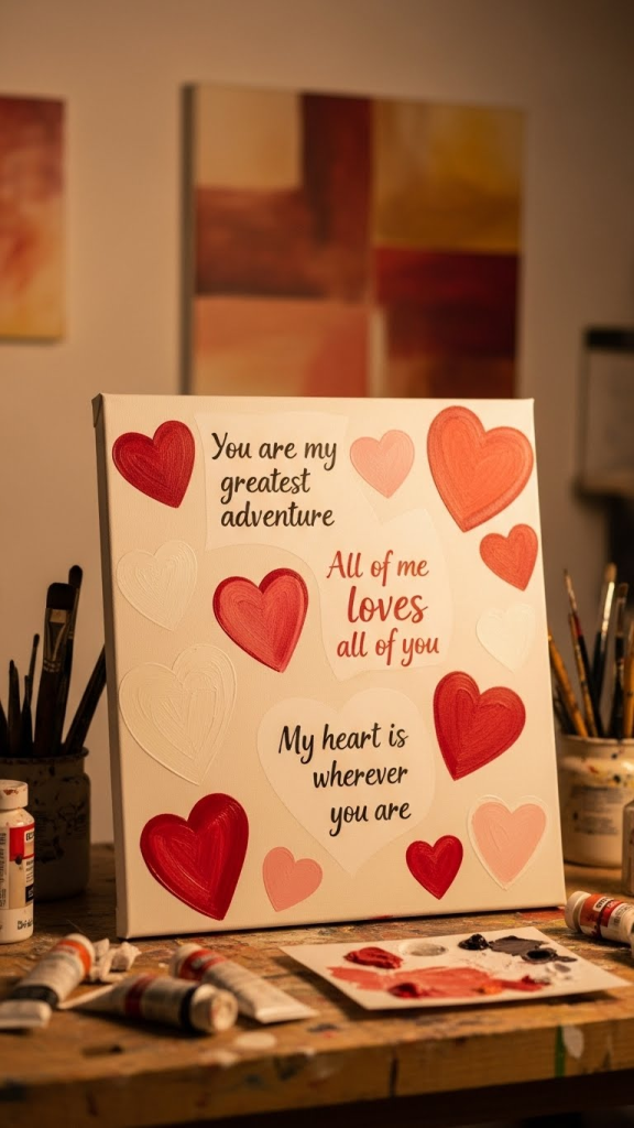 Create DIY wall art using canvases, paint, paper cutouts, or mixed media. You can design romantic quotes, abstract heart patterns, or minimalist love-themed artwork. This craft is perfect for home décor and also works well as content for art lovers and social media creators.