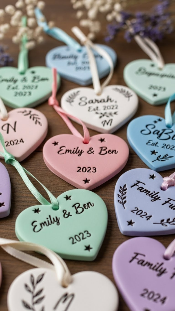Air-dry clay or polymer clay can be used to create heart-shaped ornaments, keychains, or keepsakes. You can imprint names, dates, or short messages into the clay before it dries. Once painted or sealed, these ornaments become charming reminders of love and special moments.
