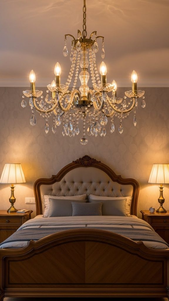 Lighting is essential in setting the mood for a vintage room. Chandeliers, wall sconces, and pendant lamps with brass, bronze, or crystal finishes are ideal. Table lamps with ornate bases and fabric lampshades can also enhance the vintage feel. Don’t forget string lights or fairy lights—they add a whimsical, cozy ambiance reminiscent of older, nostalgic spaces.