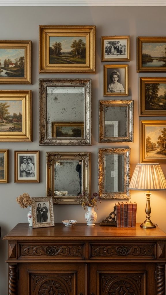 Wall décor is an easy and effective way to introduce vintage vibes. Look for old paintings, prints, or photographs in ornate frames. Gallery walls featuring a mix of family photos, vintage illustrations, and antique mirrors are particularly charming. You can also create DIY wall art using aged paper, pressed flowers, or decoupage techniques to add a personal, nostalgic touch.