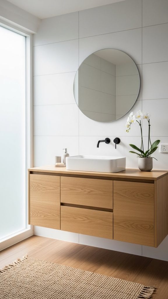 One of the easiest ways to introduce wood into your bathroom is through a wooden vanity unit. Whether it’s a floating vanity with clean lines or a traditional floor-standing piece, wood adds a sense of sophistication. Consider using natural oak or walnut for a luxurious feel, or bamboo for an eco-friendly option. Wooden vanities pair beautifully with marble countertops or ceramic sinks, creating a timeless look.