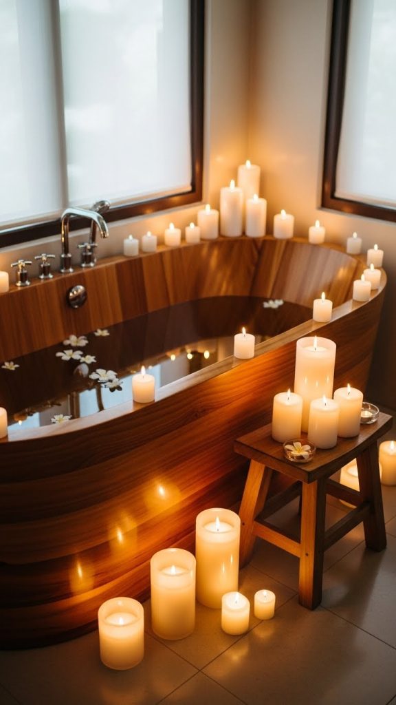 For a luxurious spa-like experience, consider a wooden bathtub. Crafted from teak, cedar, or hinoki wood, these bathtubs retain heat longer than traditional materials and provide a natural aroma during baths. While they require careful maintenance, wooden bathtubs are a statement piece that adds elegance and tranquility to your bathroom.