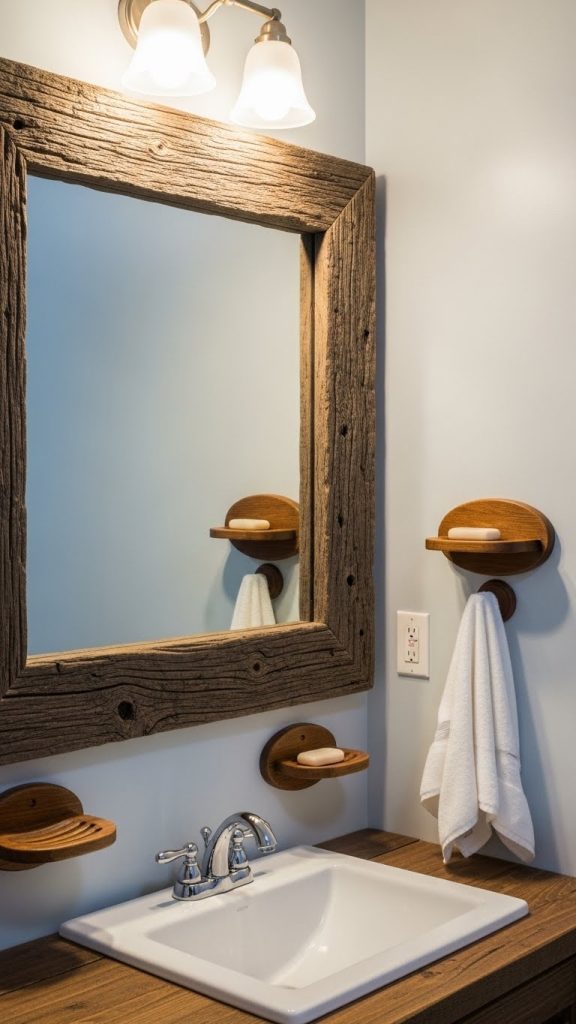 If you’re not ready for large wooden installations, start with wooden accents. Mirrors with wooden frames, wooden towel racks, or soap dishes can bring natural warmth without overwhelming the space. Accents also allow you to experiment with color, texture, and style, from rustic reclaimed wood to sleek, modern finishes.